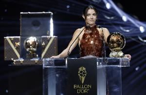 连续三次夺女足金球奖!西媒介绍邦马蒂礼服:华丽!棕色亮片覆盖