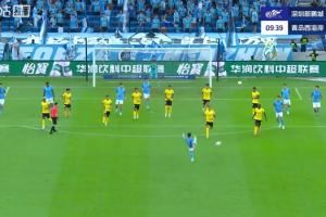 体育资讯09月28日讯 中超第26轮,深圳新鹏城vs青岛西海岸,比赛第10分钟,深圳新鹏城角球开出,张卫凌空打门踢呲,皮球直接落到对手脚下,戴维森长途奔袭破门,西海岸1-1扳平新鹏城。